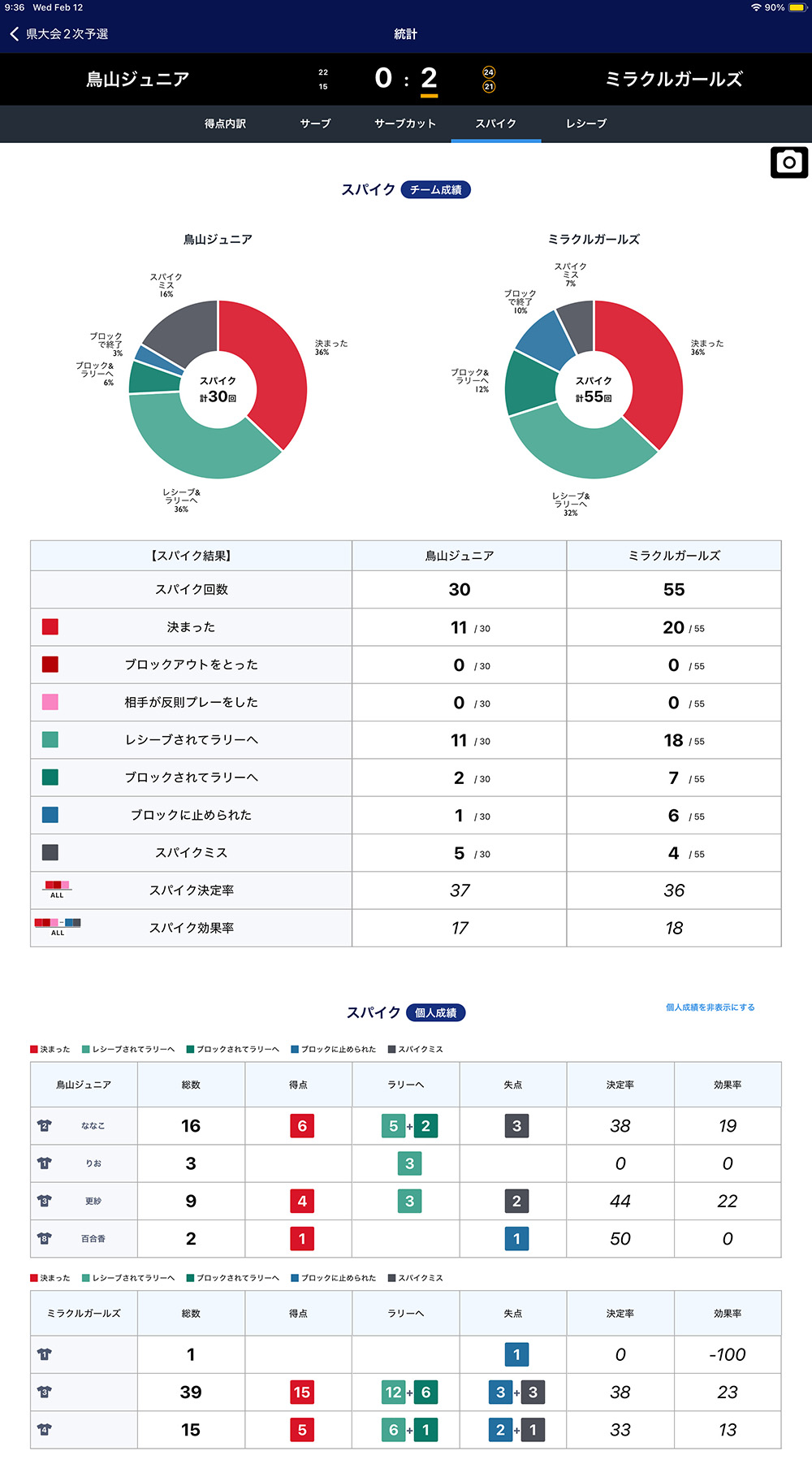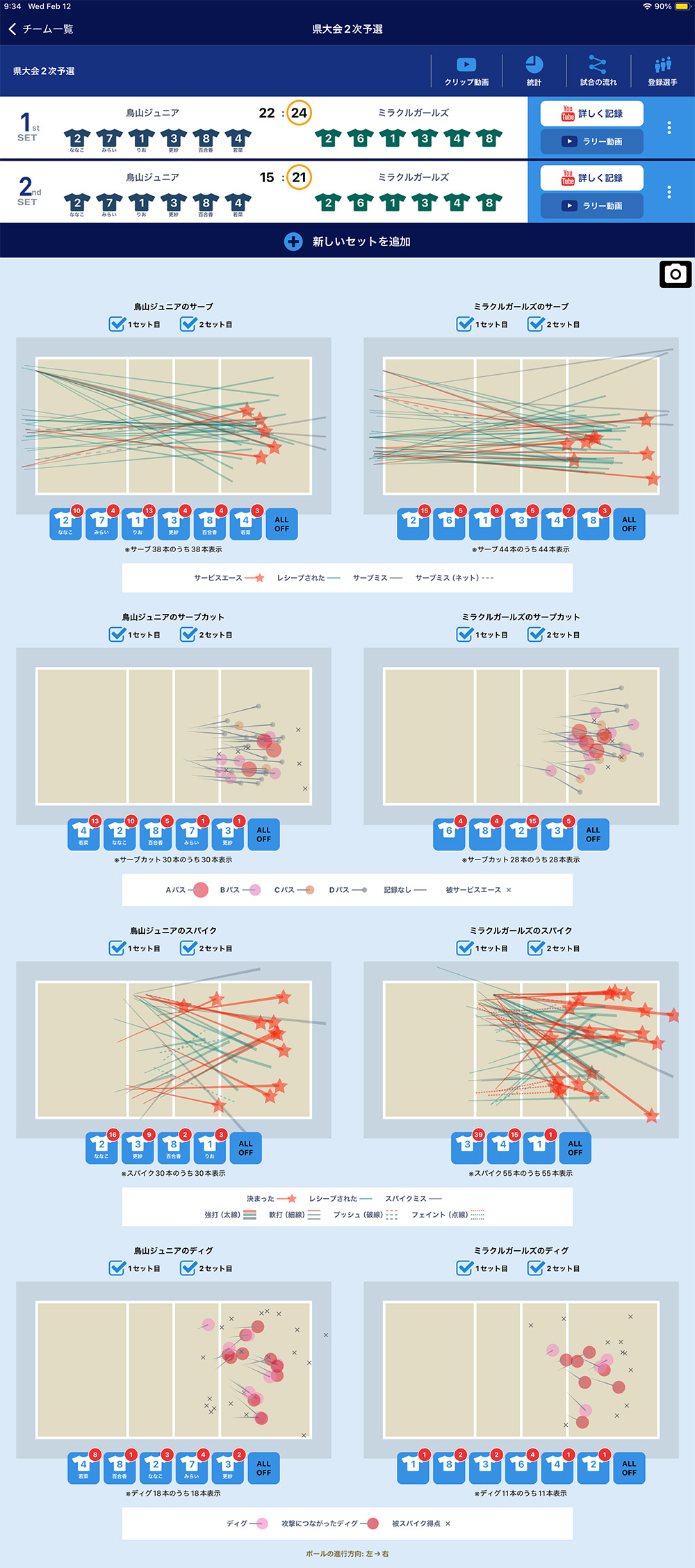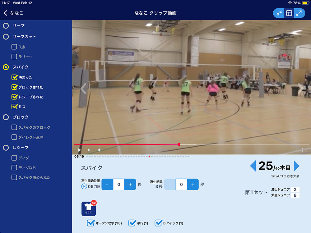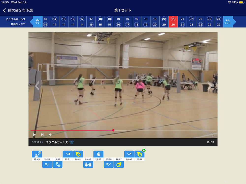 「動画で記録」の次のステップになります。対象のプレーのみを繰り返し再生しながらの記録になるので、落ち着いて正確に記録できます。