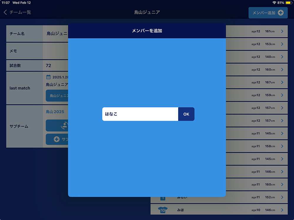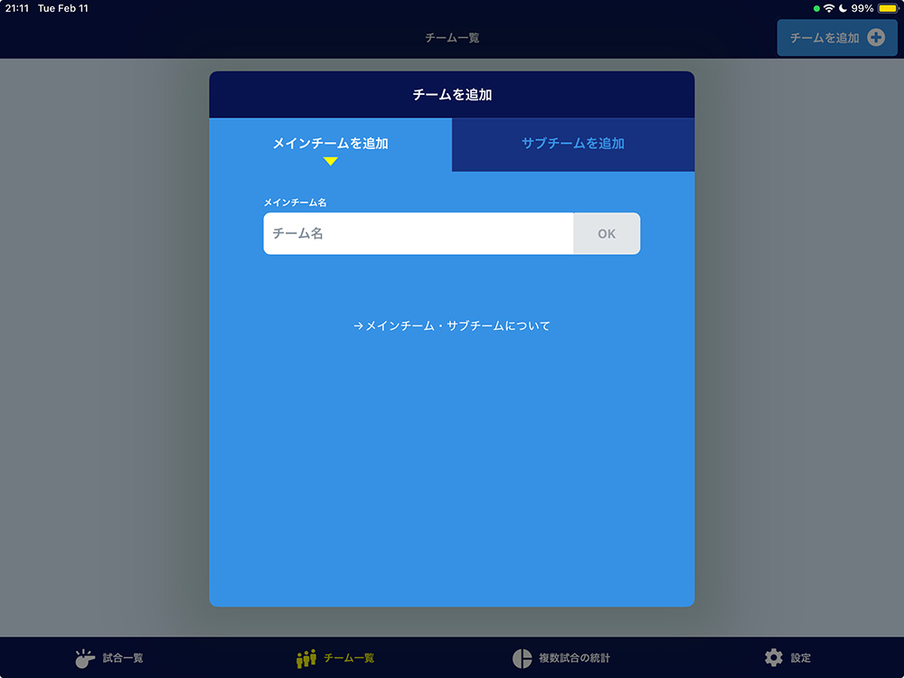 もしも1つのチーム内に複数のチームがあり、1人の選手が複数のチームに所属する可能性がある場合は、ここでメインチームを追加した後に、サブチームも追加してください。